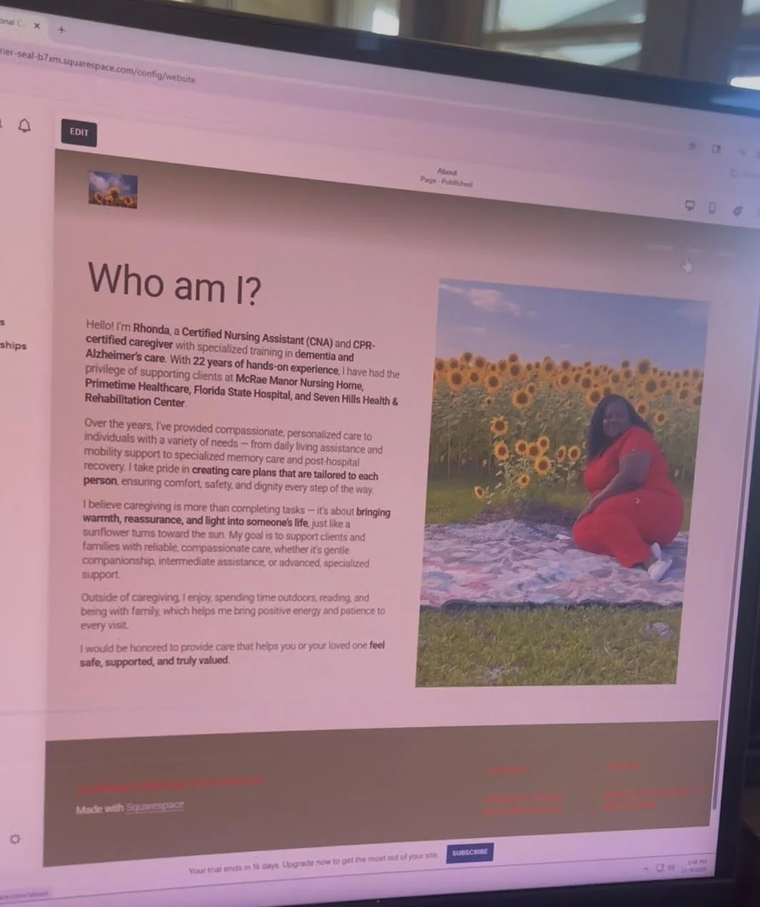By combining strategic web design with data-driven social media, her online presence transformed into a client-generating machine. Families could find, trust, and book her services faster than ever — and she gained instant credibility as a top private duty caregiver.